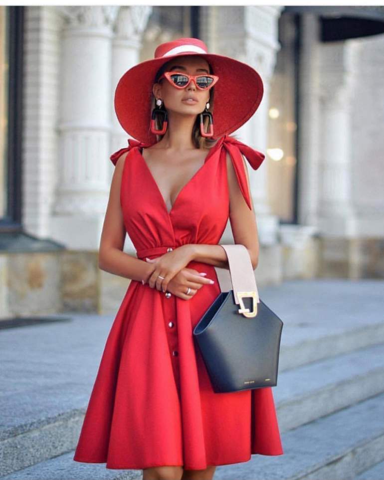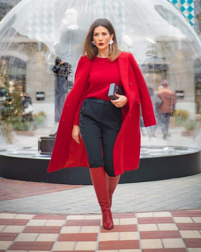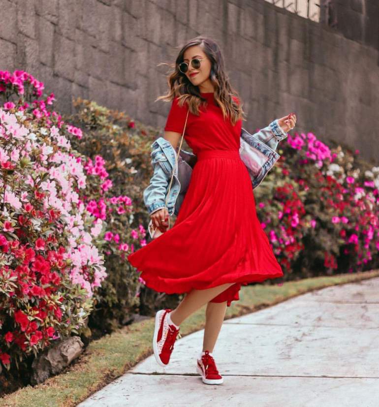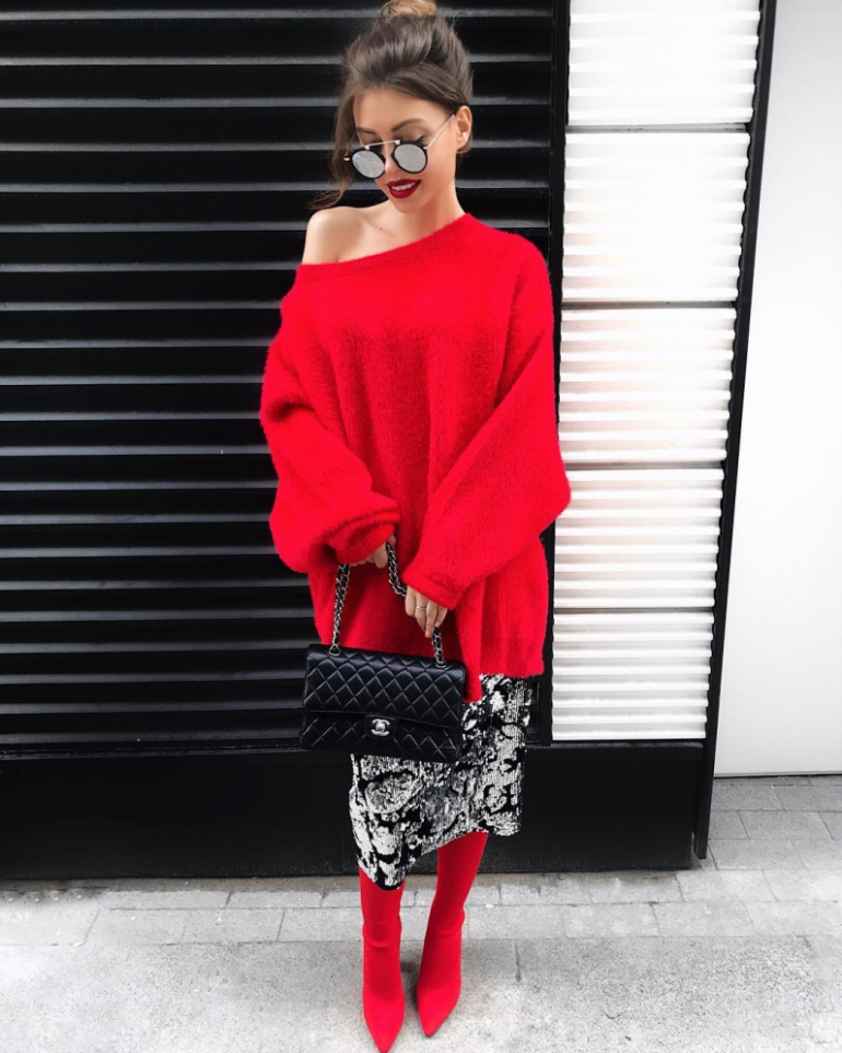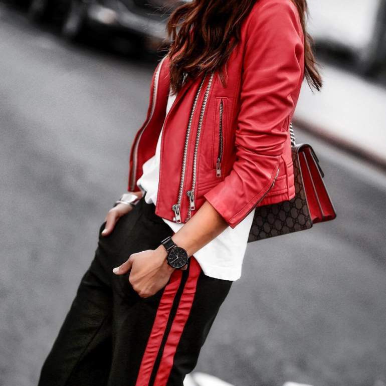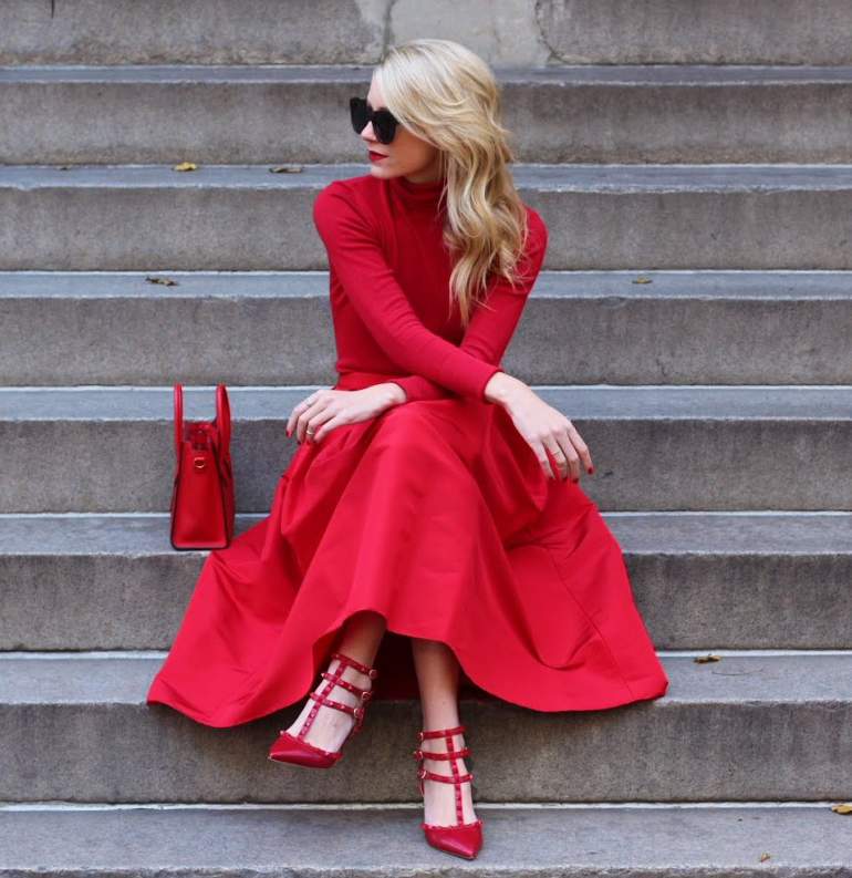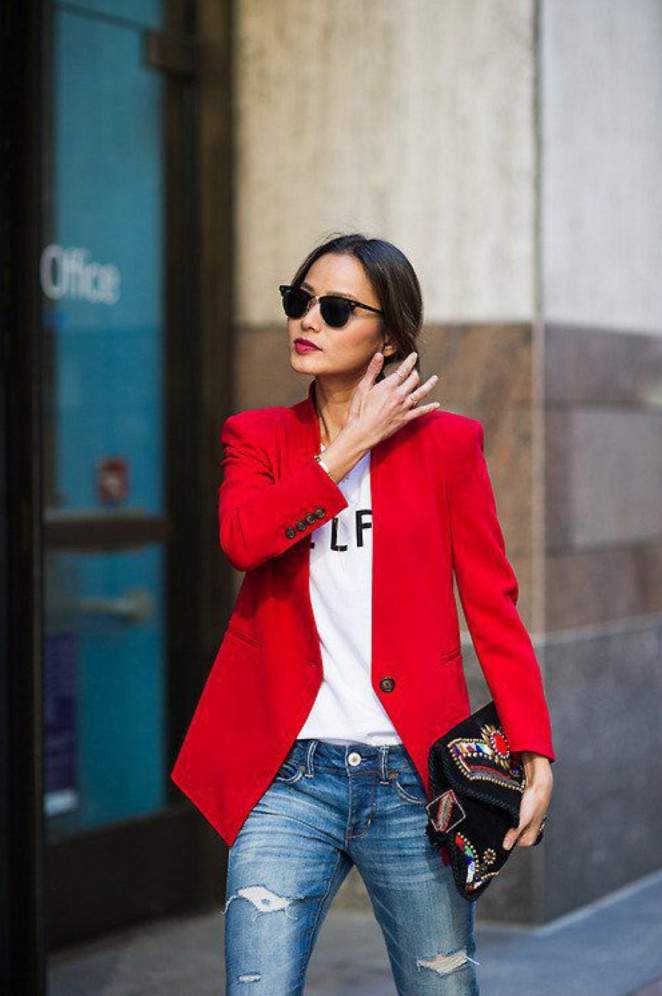 Сочетание сильно красного в одежде.