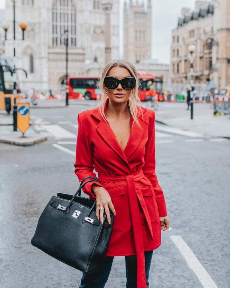 Жакет очень красный.