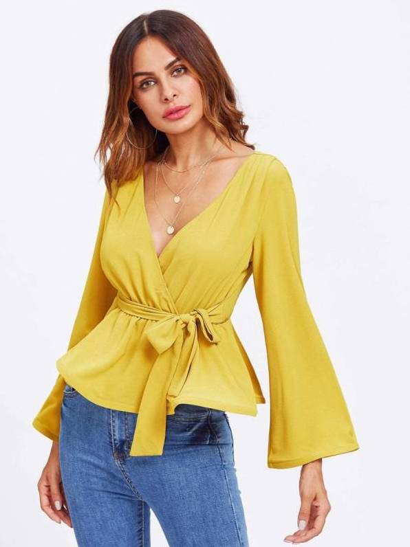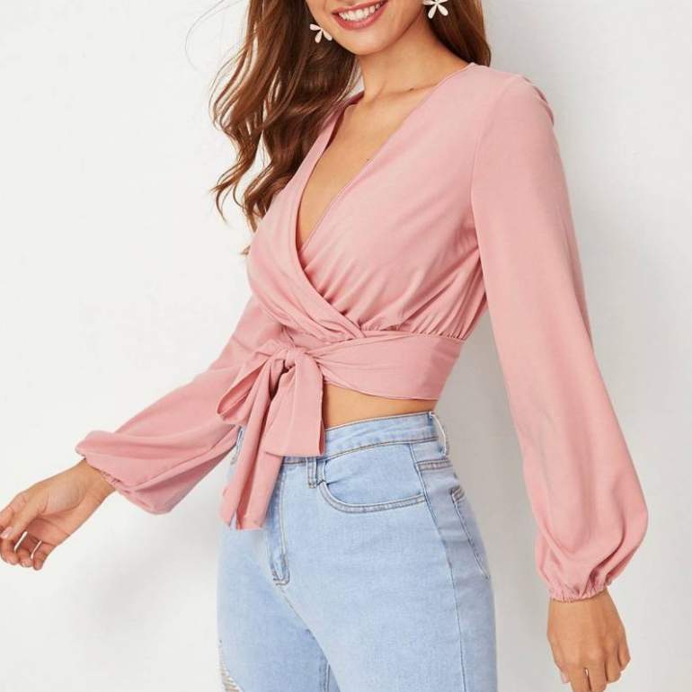 Приталенные блузки на запахе.