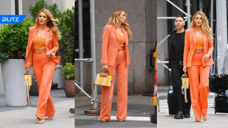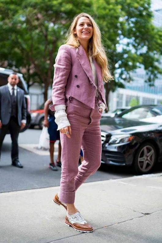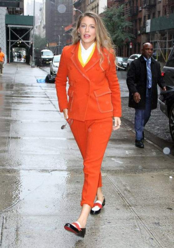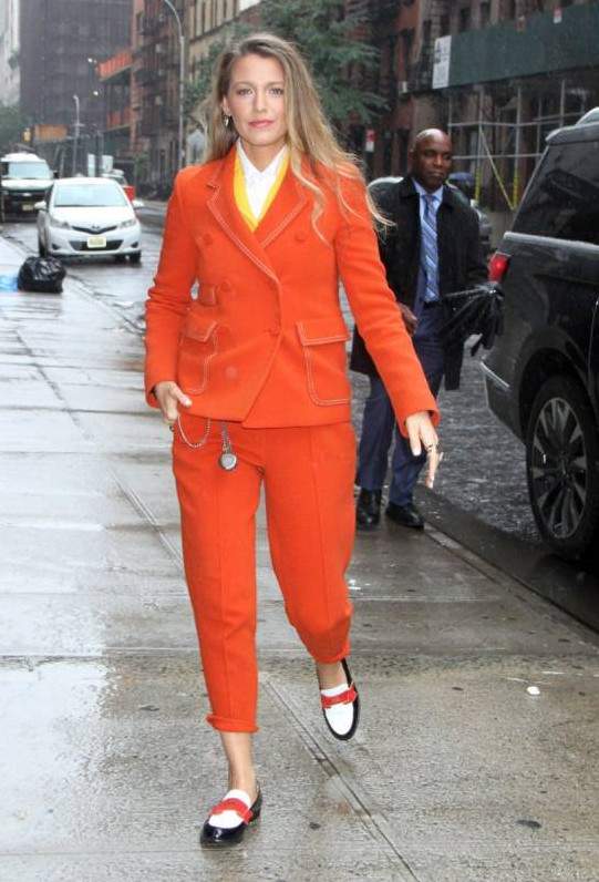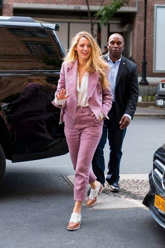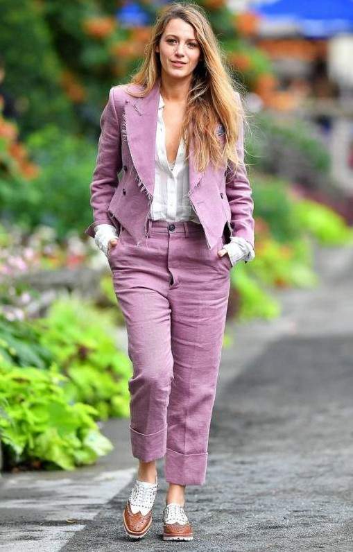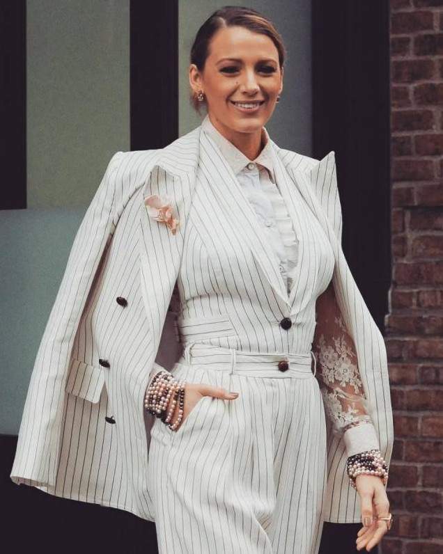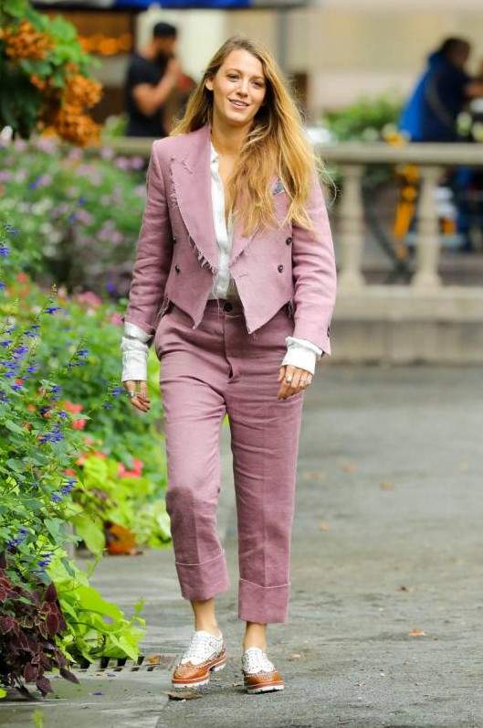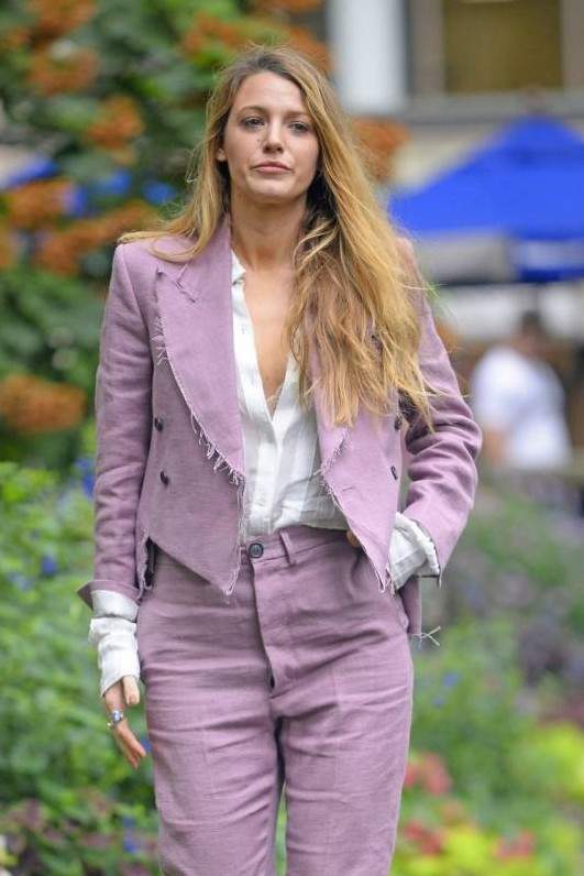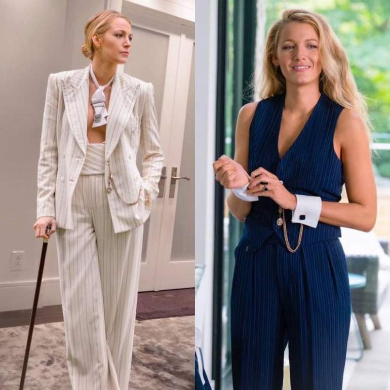 Блейк Лайвли в брючном костюмчике в кинофильме.