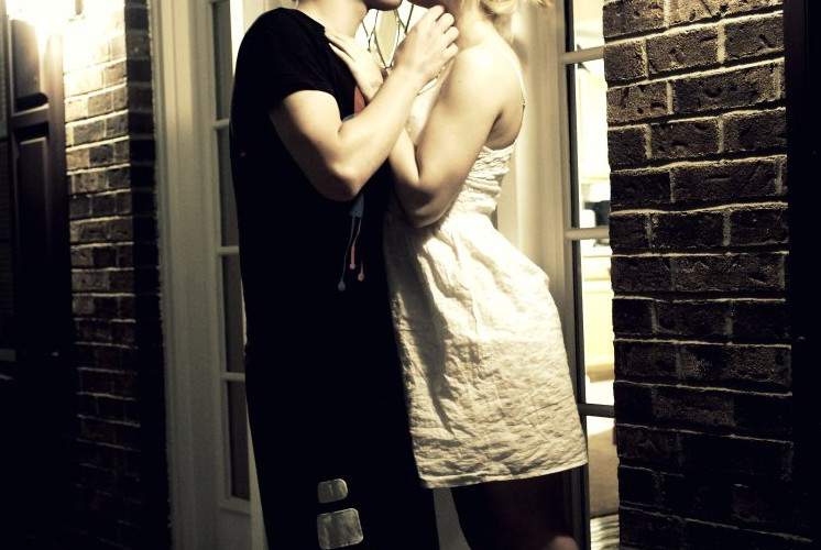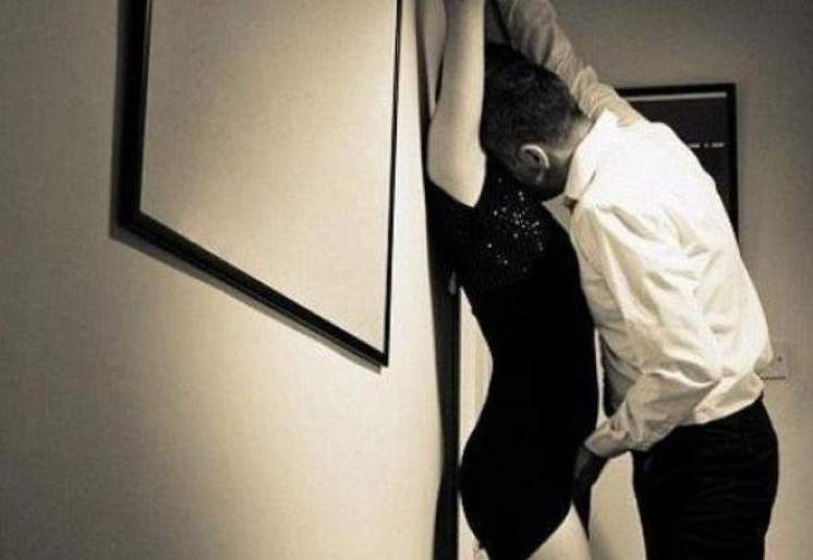 Парень прижал прекрасную женщину к стене.