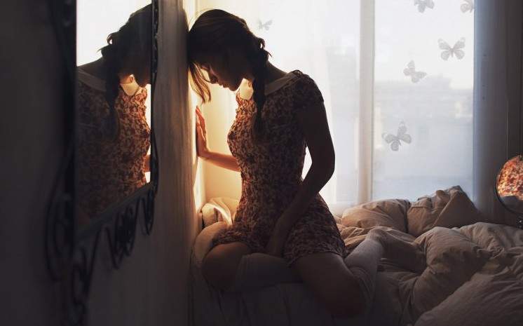 Одинокая модель у окна.