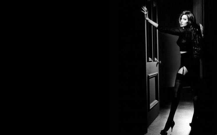 Анджелина Джоли на черном фоне.