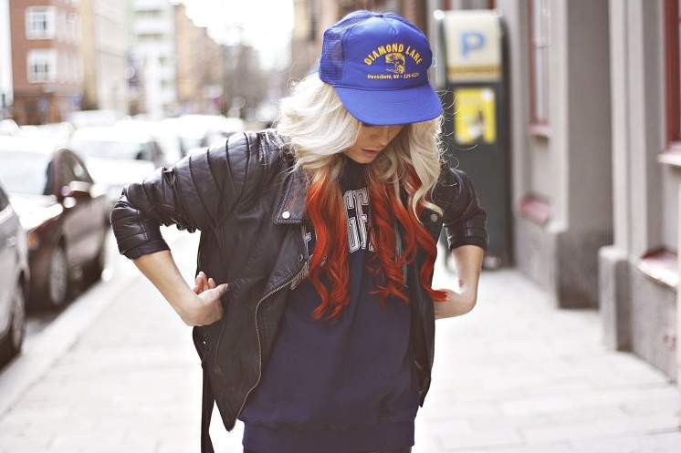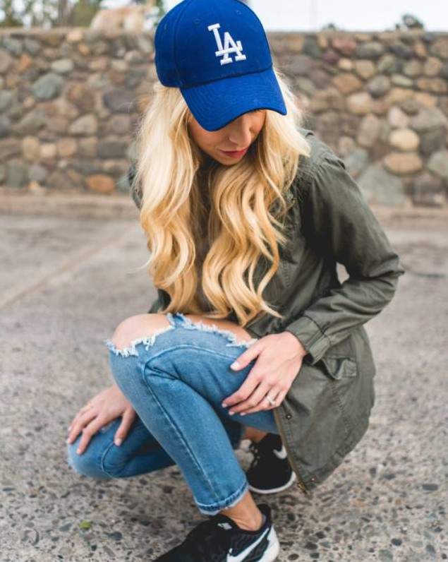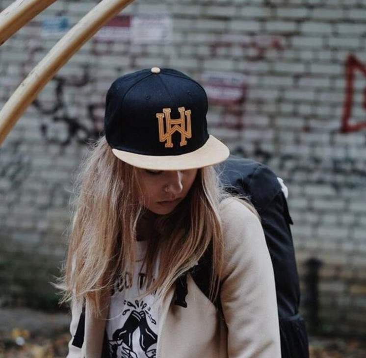 Модель блондиночка в бейсболке.