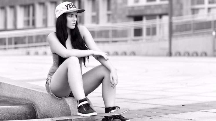 Красивая девушка на скейтборде.