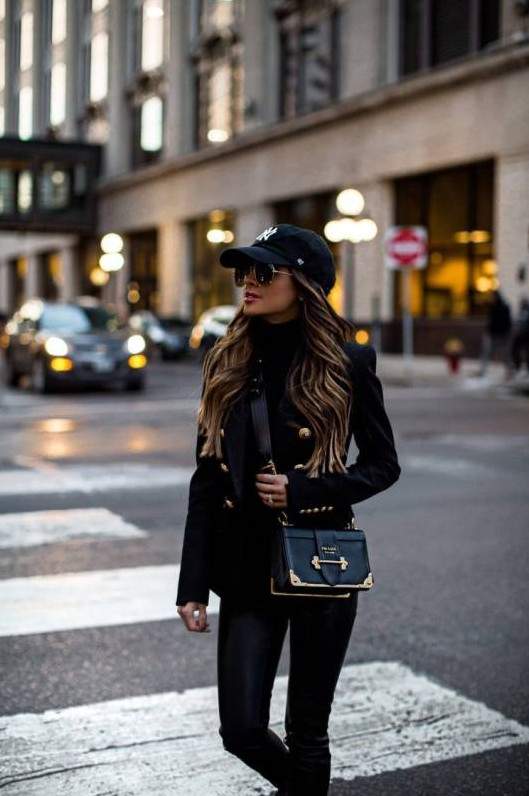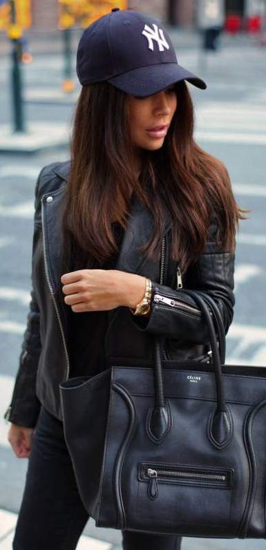 Кожаная куртка и кепка.