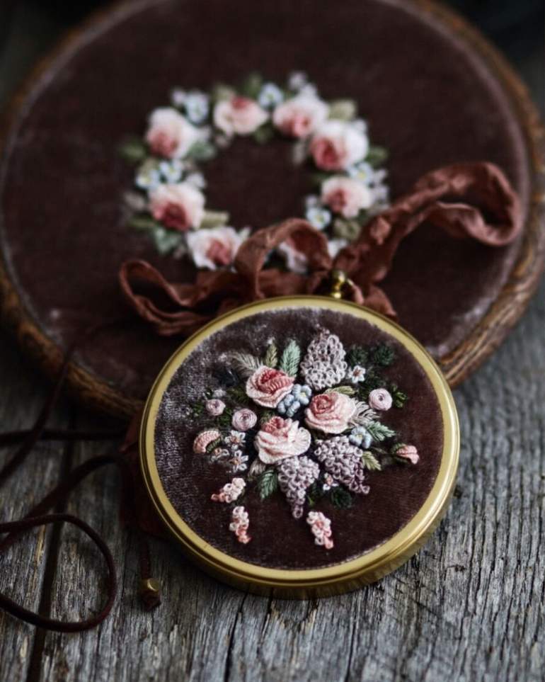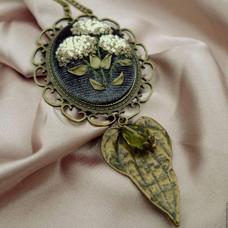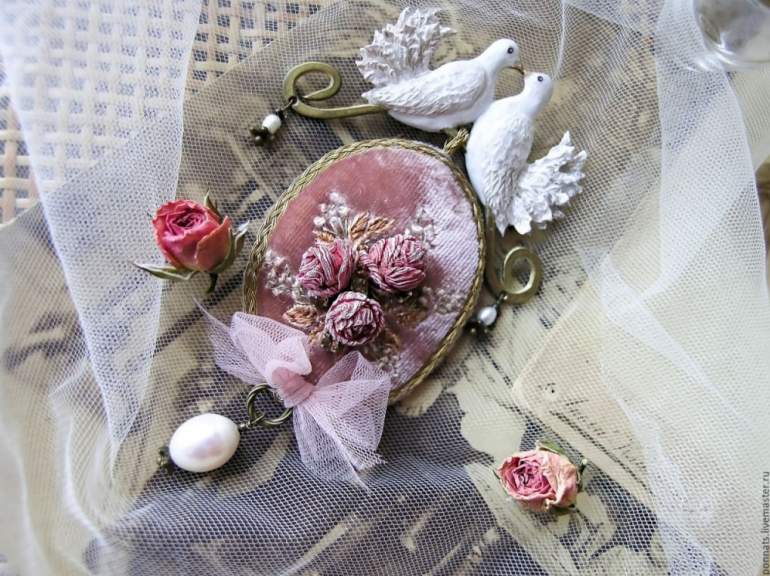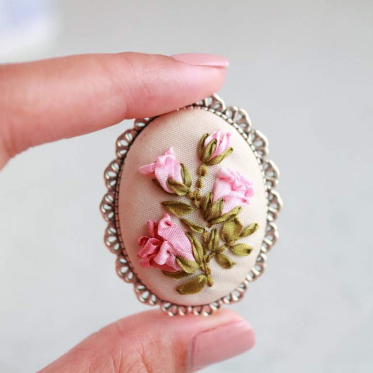 Броши вышитые лентами.