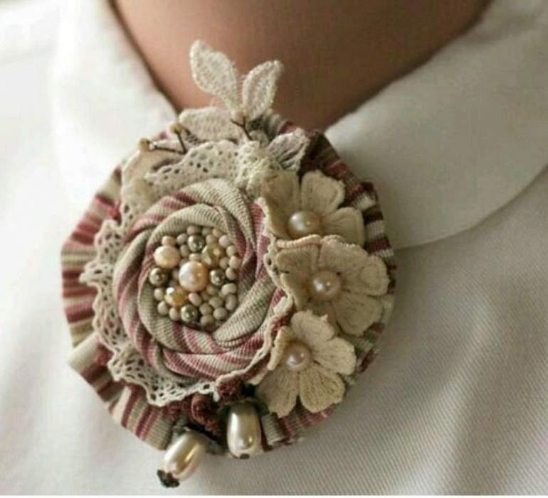 Винтажная брошь из ткани.