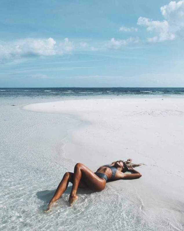 Позирование на море в купальнике.