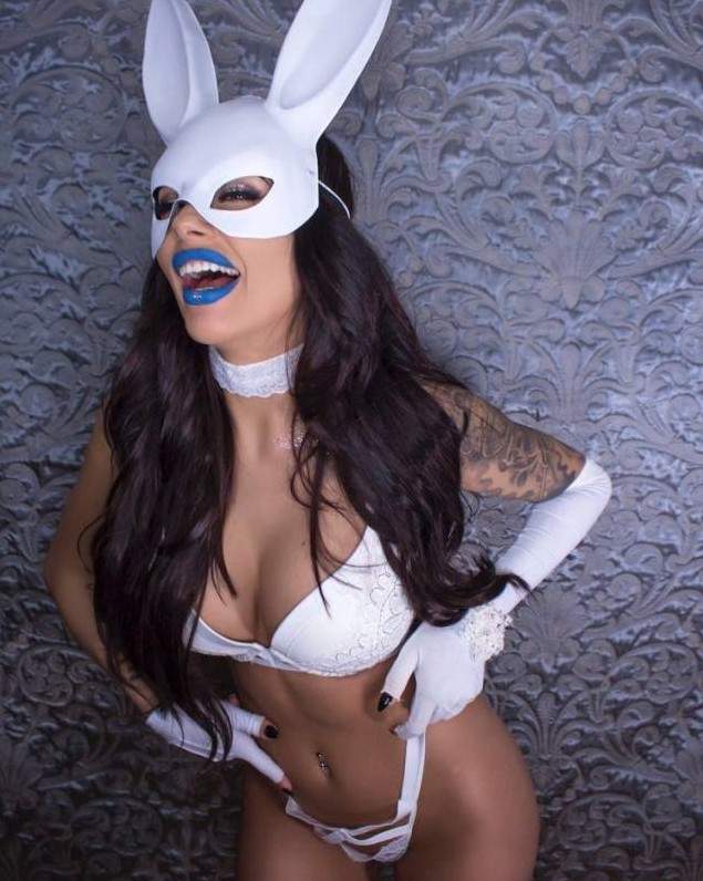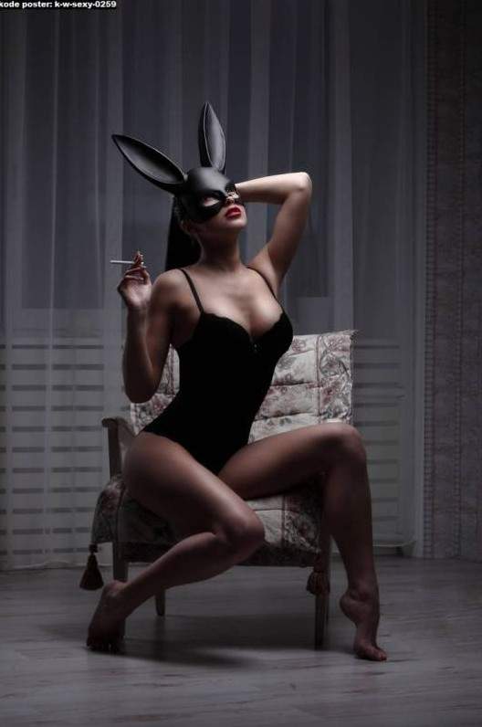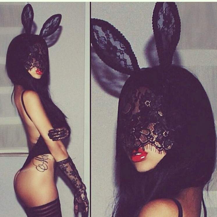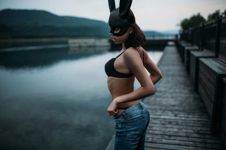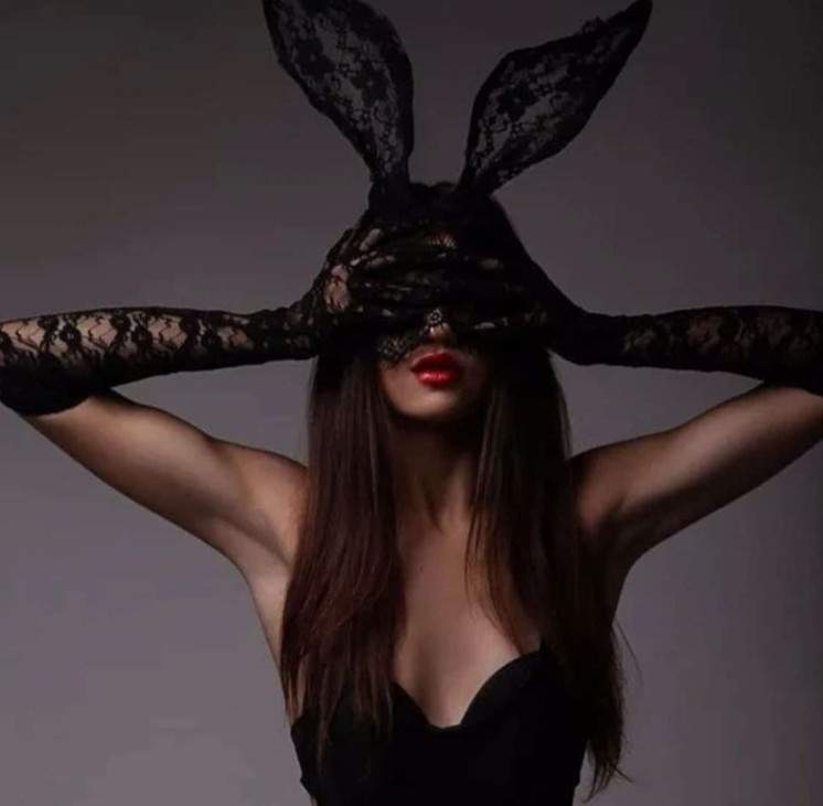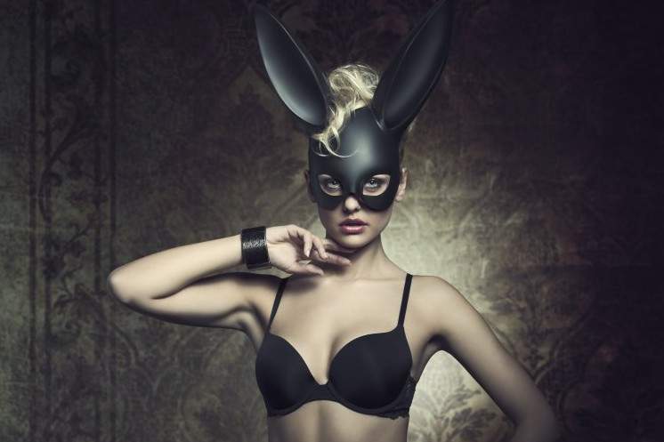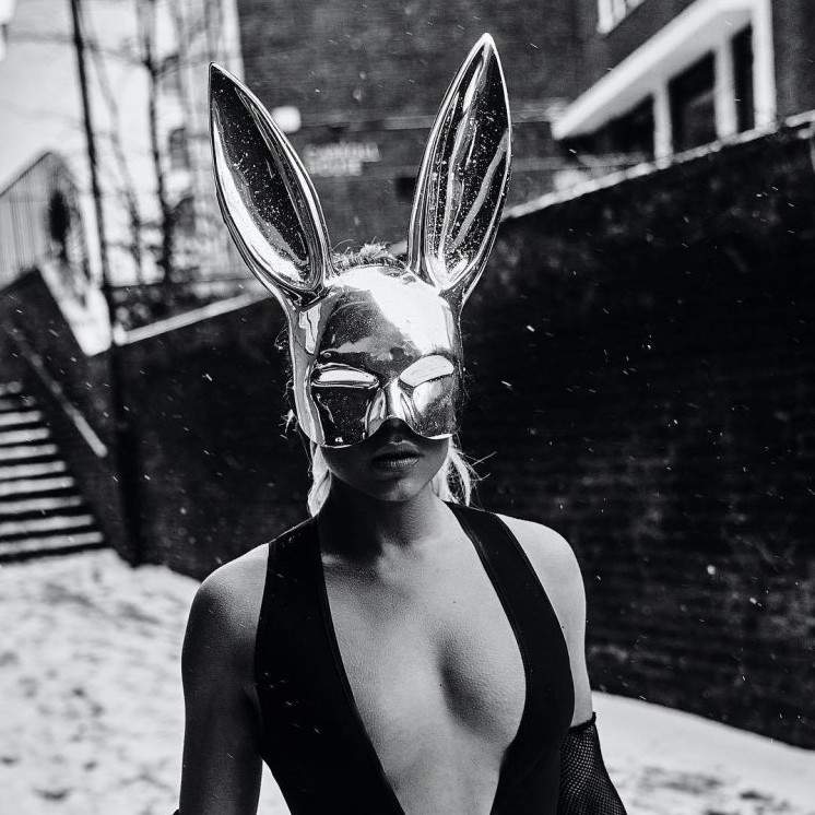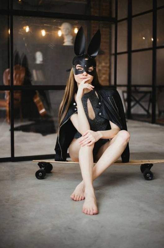 Эротическая фотосессия в маске зайца.