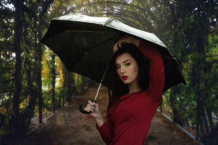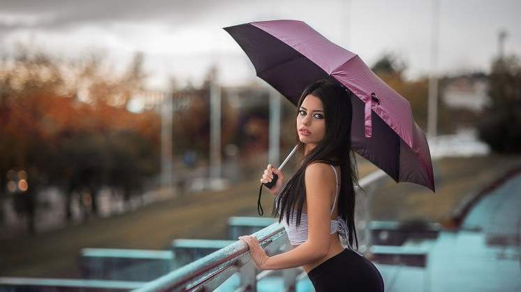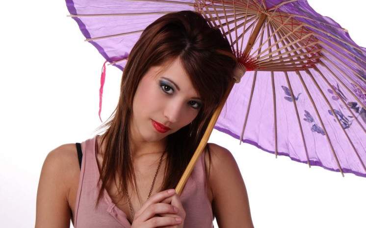 Эротика с брюнеткой с зонтиком.
