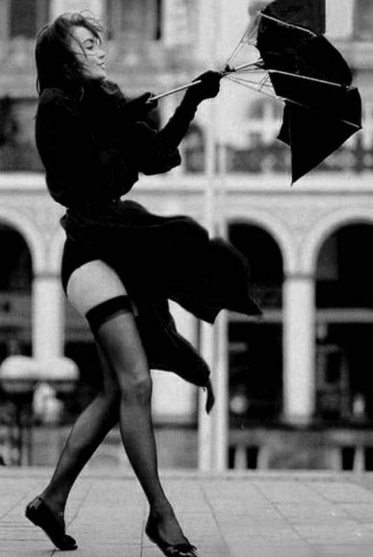 Мощнейший ветер и модель в юбке.