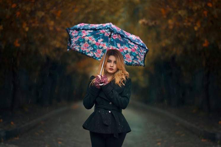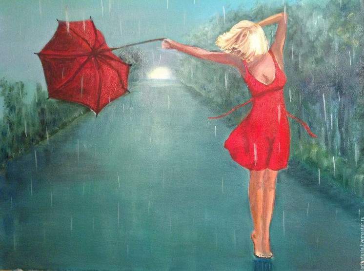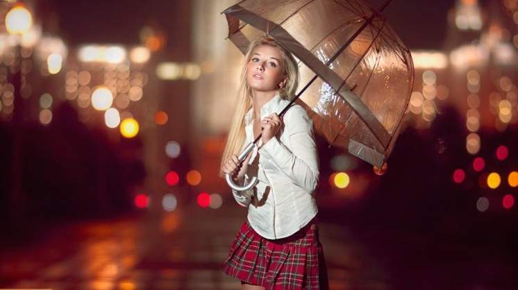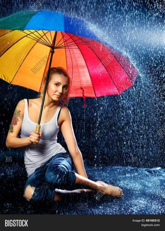 Блондиночка под дождем.
