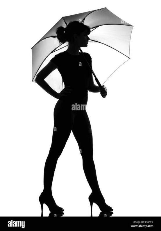 Силуэт восхитительные женщины с зонтиком в полный рост.