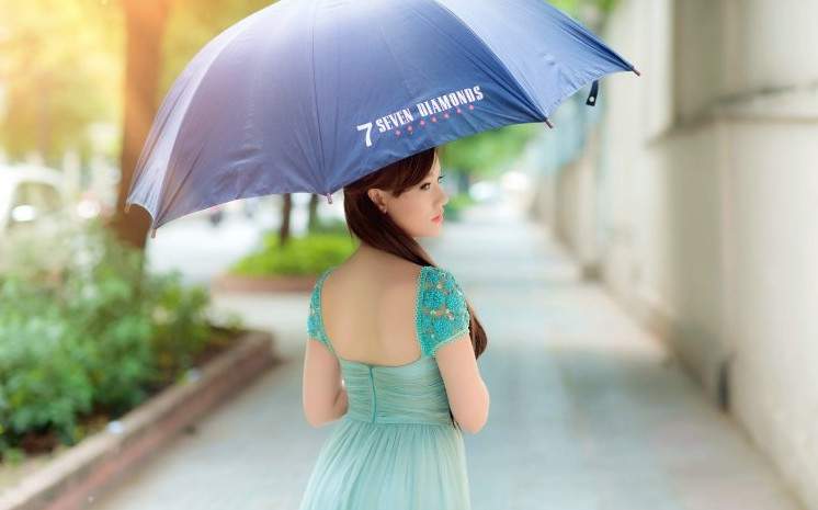 Красивая девушка с зонтиком голубым.