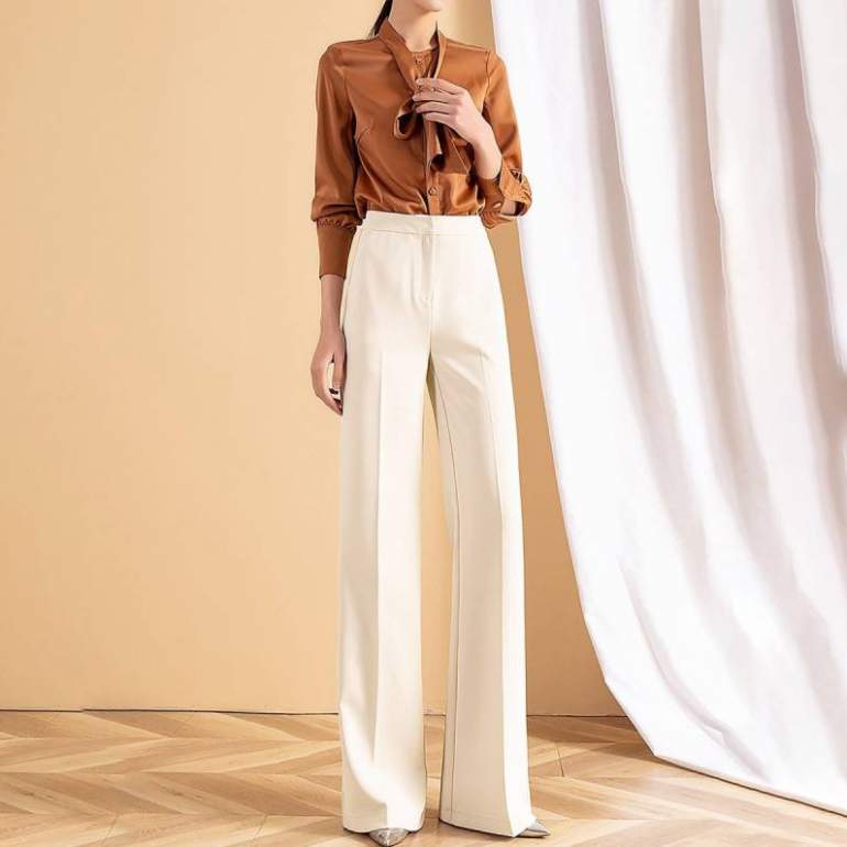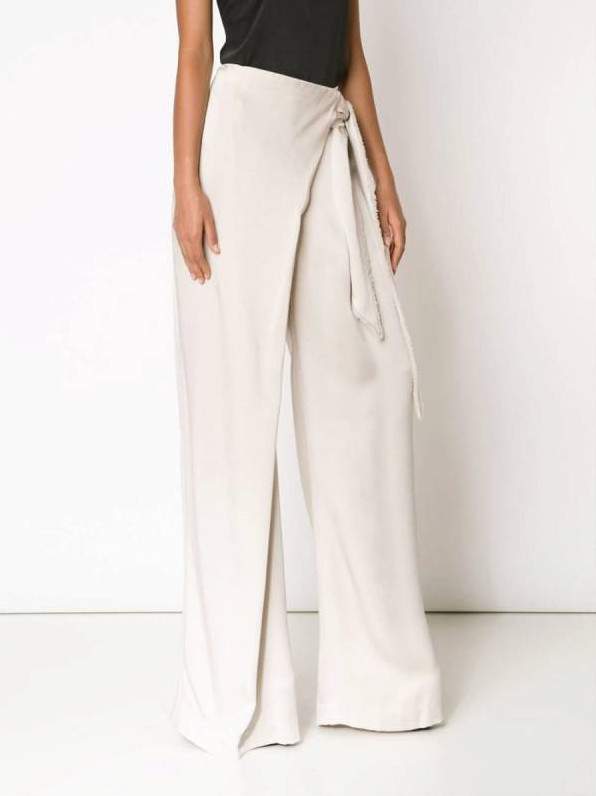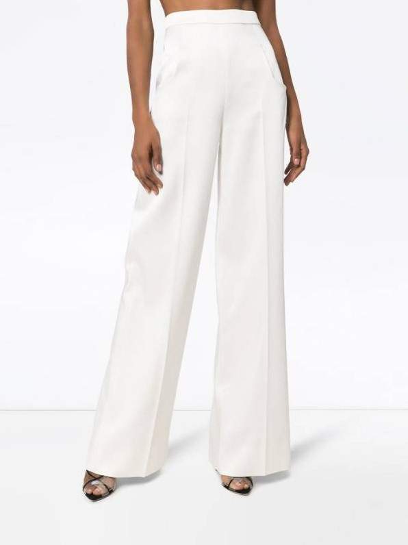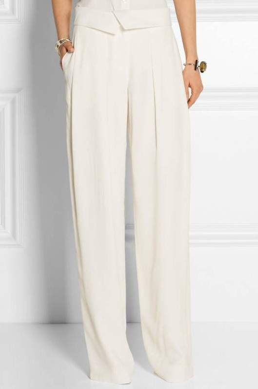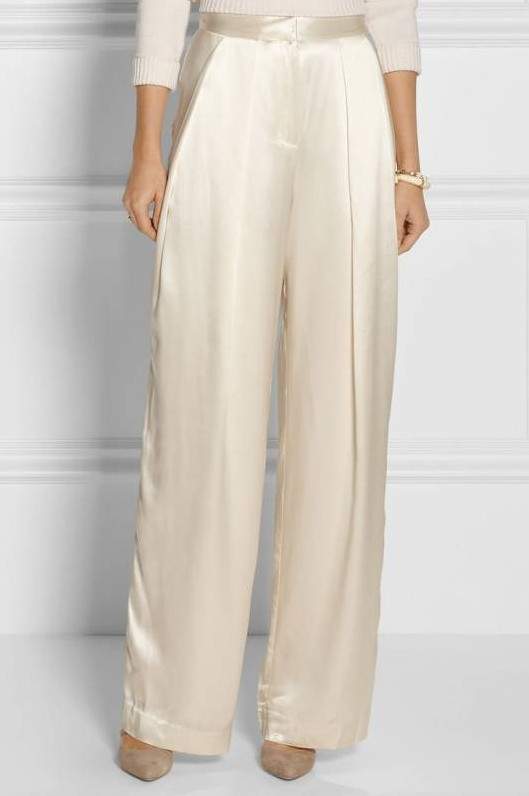 Белоснежные шелковые штаны палаццо.
