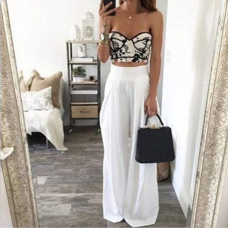 Штаны палаццо и кроп топ.