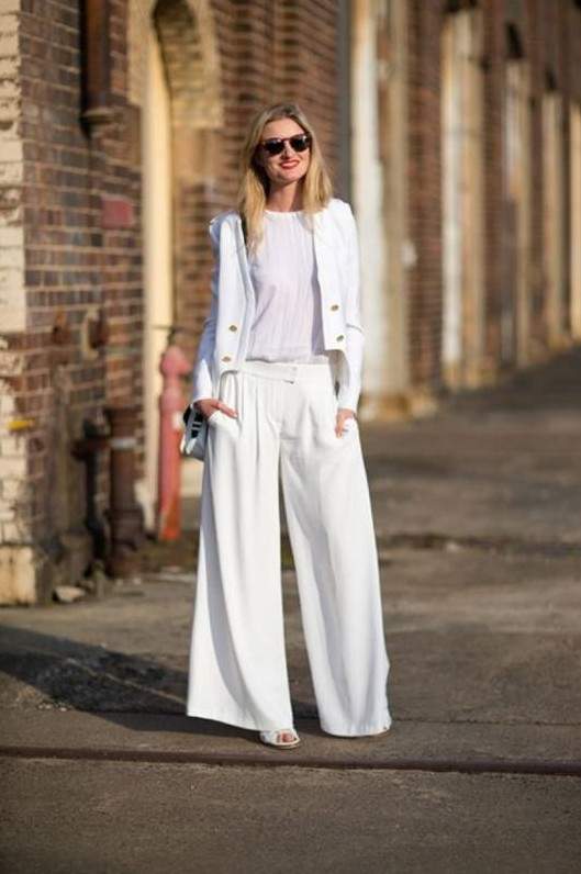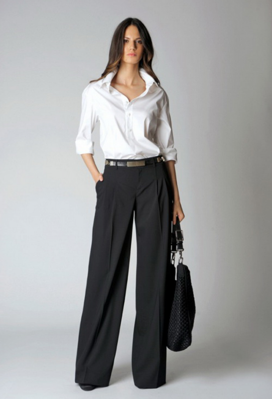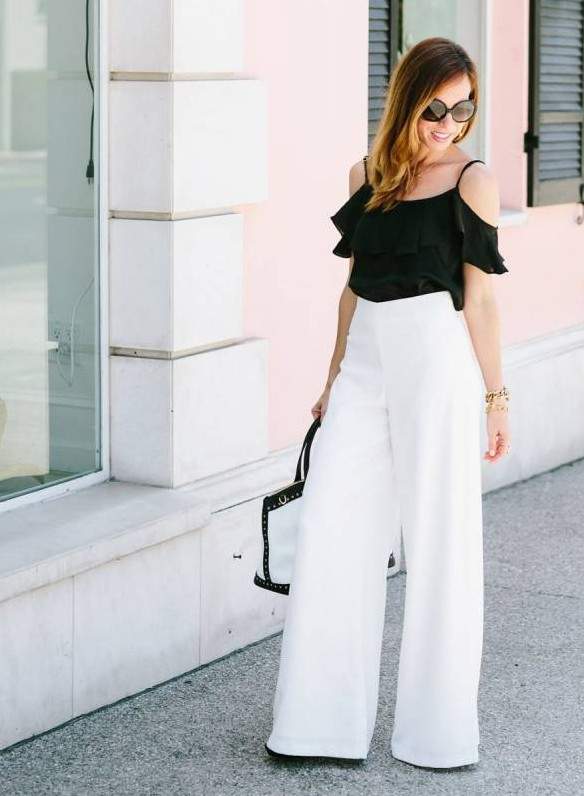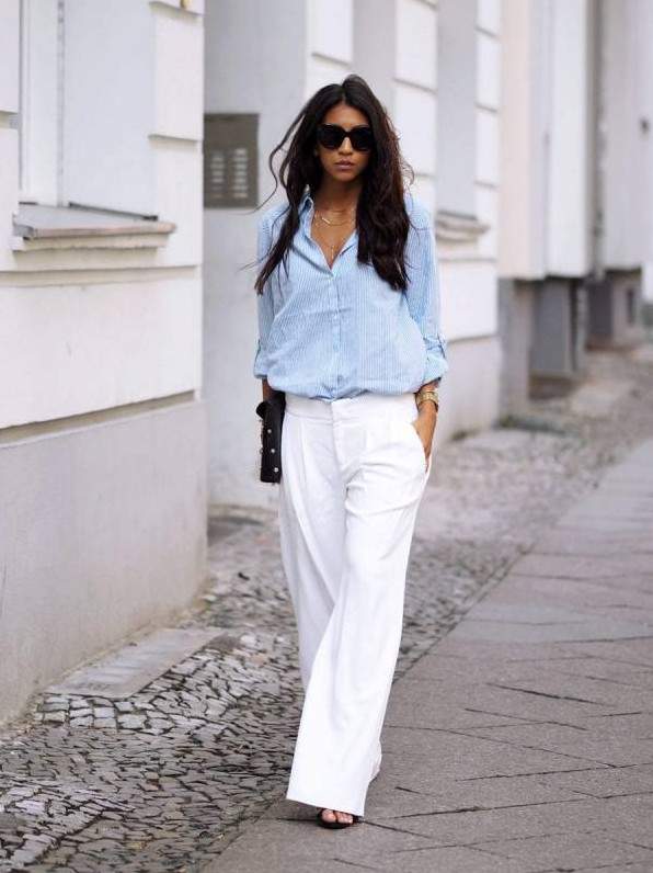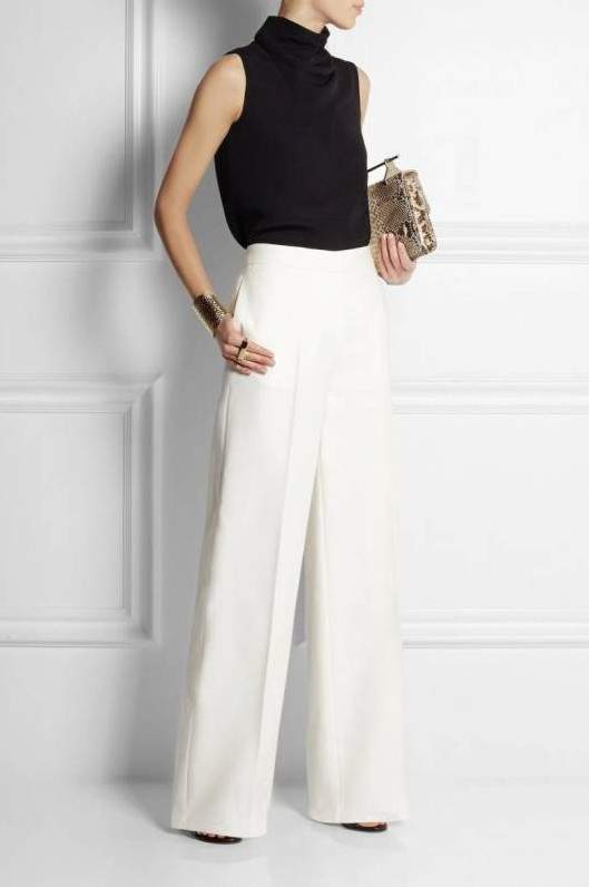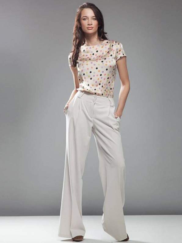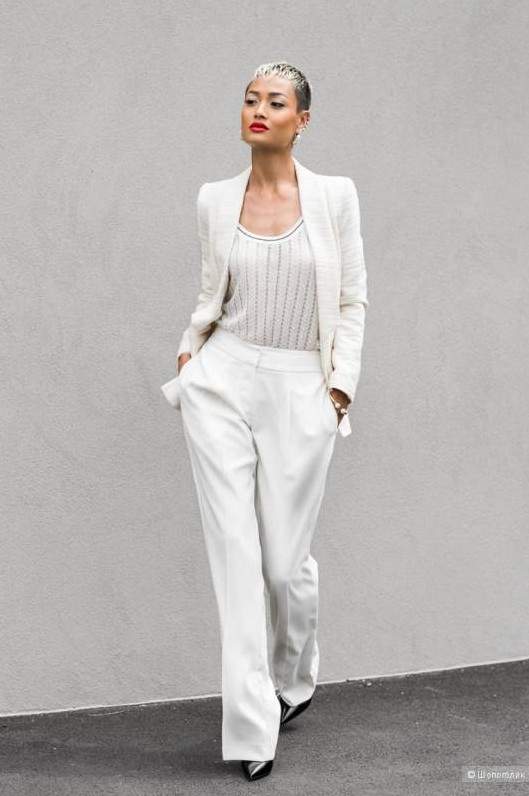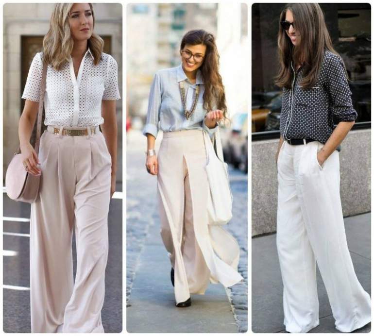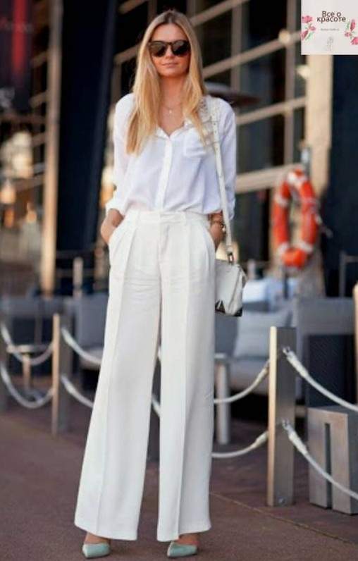 Белоснежные широкие штаны дамские образы.