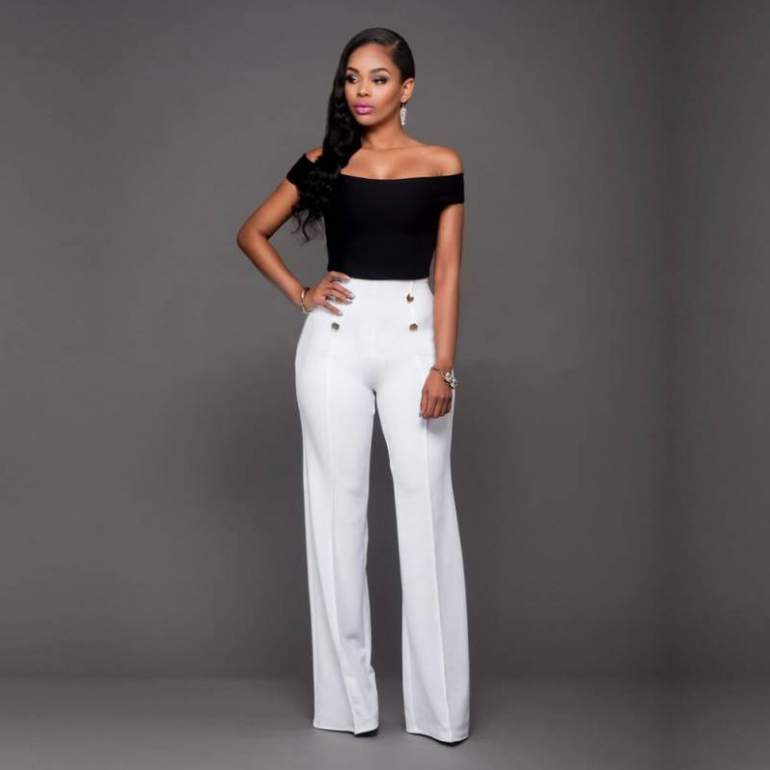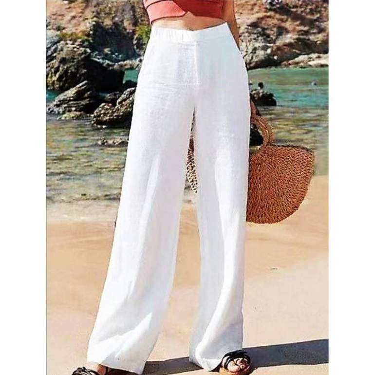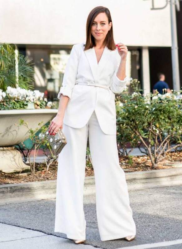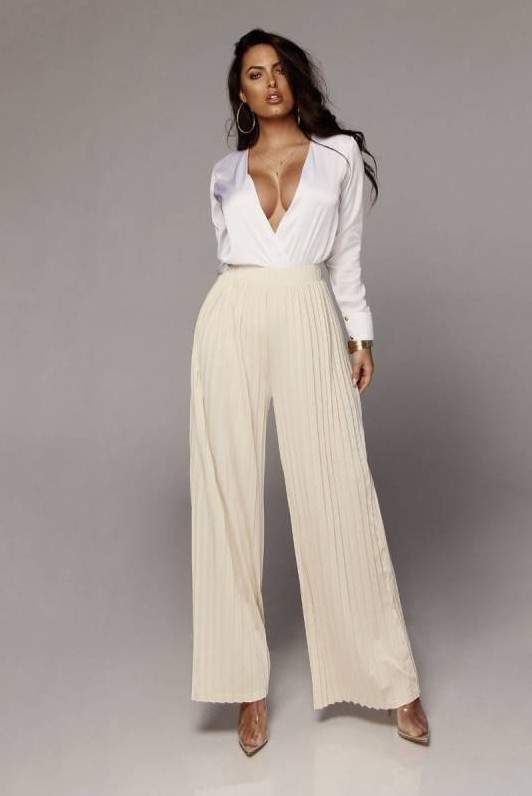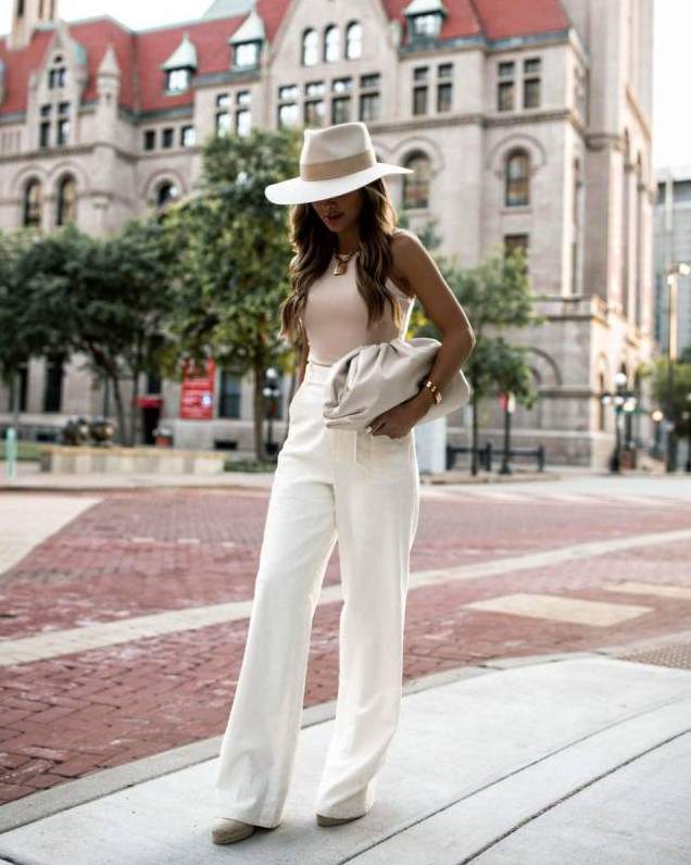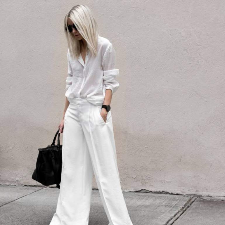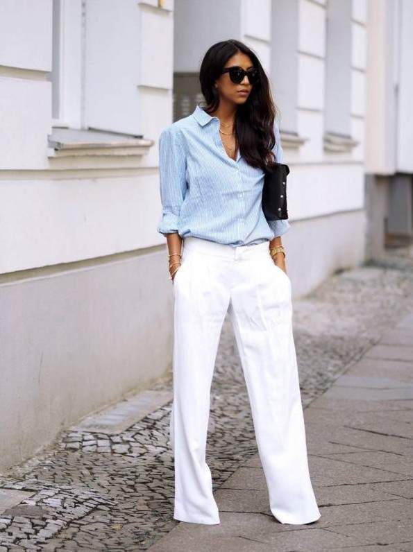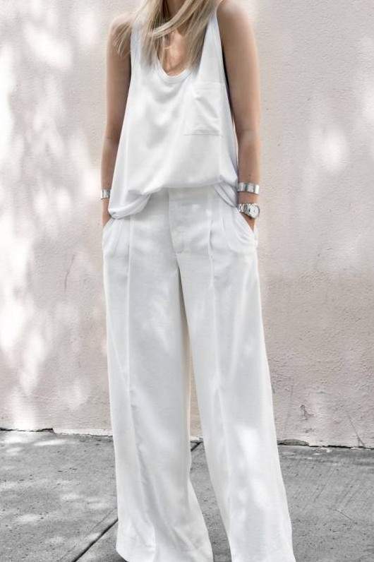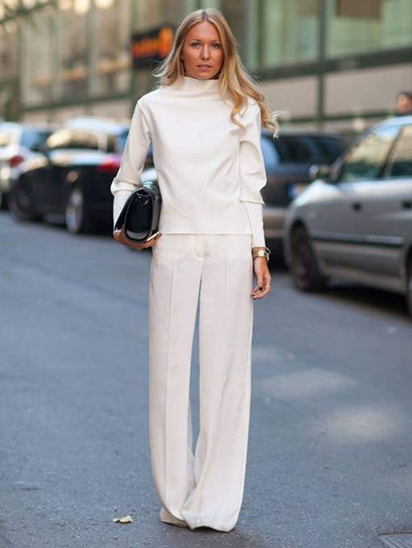Белоснежные широкие штаны дамские образы.