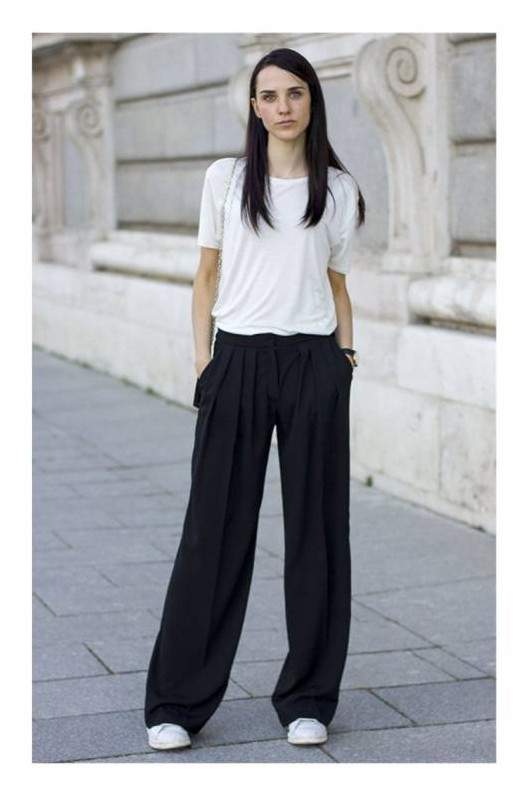 Штаны палаццо с кедами.