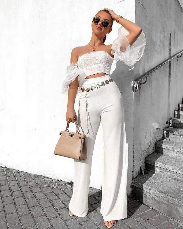 Белоснежные штаны палаццо.
