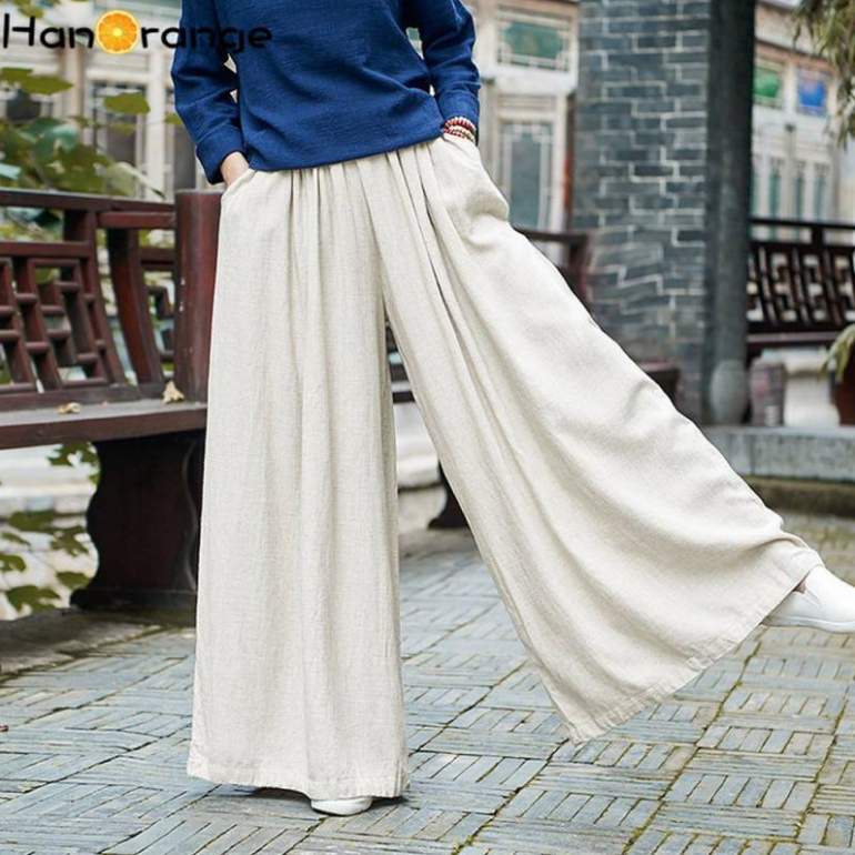 Широкие льняные штаны дамские.
