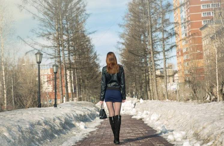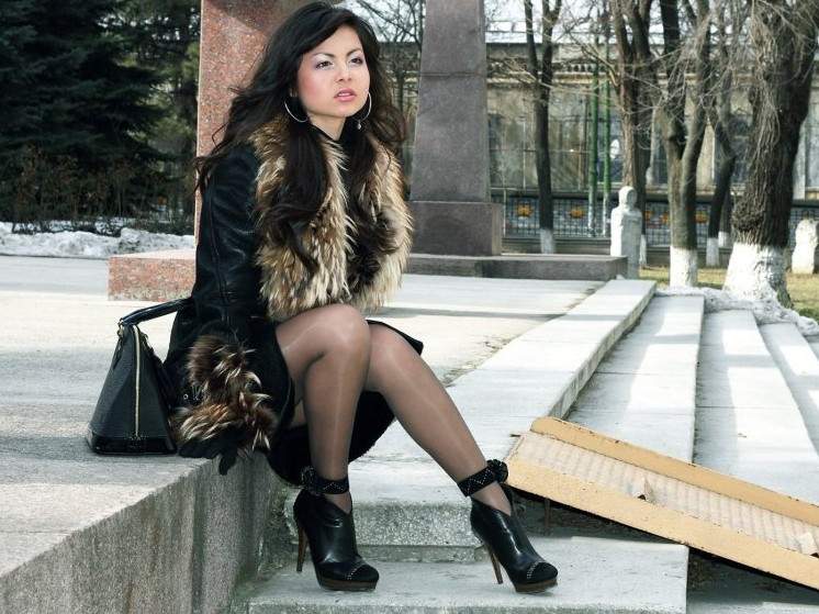 Красивые восхитительные женщины в леггинсах в зимнюю пору.