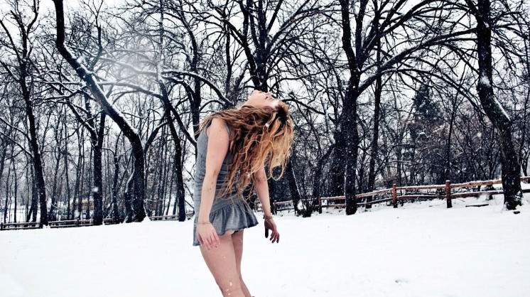 Красивые восхитительные женщины в зимнюю пору в купальниках.