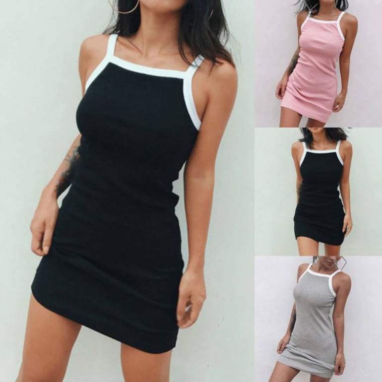 Women Bodycon Dress sexy Sleeveless Tank Slim Mini short Club Dress stretch Party Sundress Office Lady Pink Yellow Summer Dress.