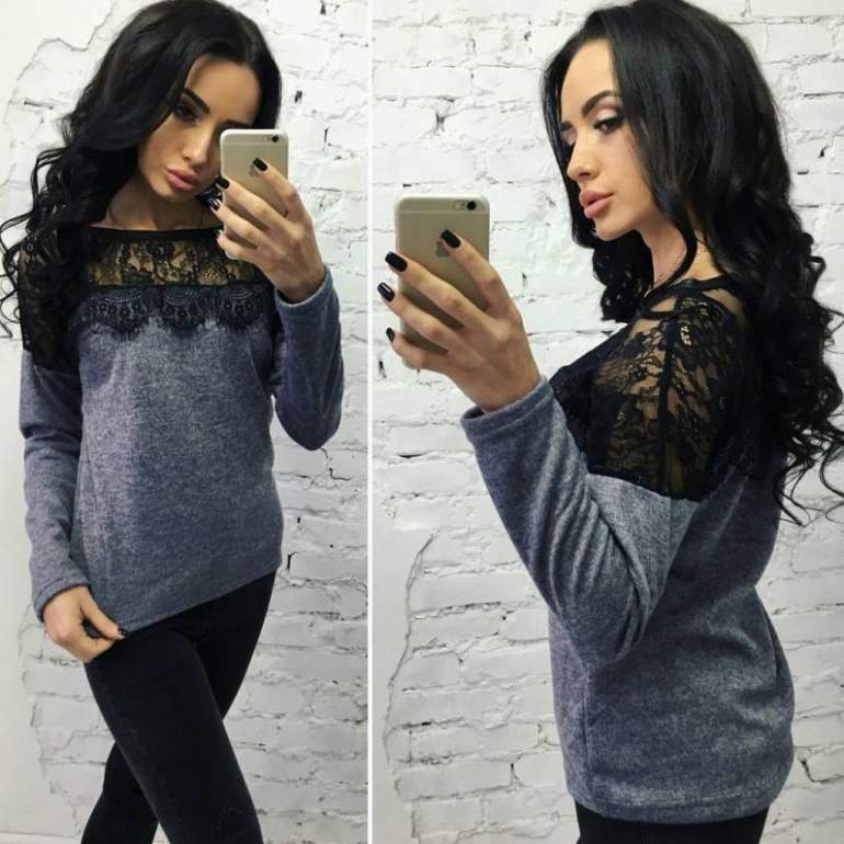 Трикотажная кофта с кружевом.