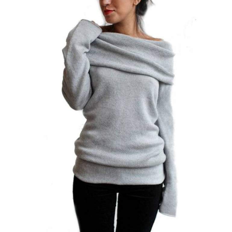Свитер с широким воротом.