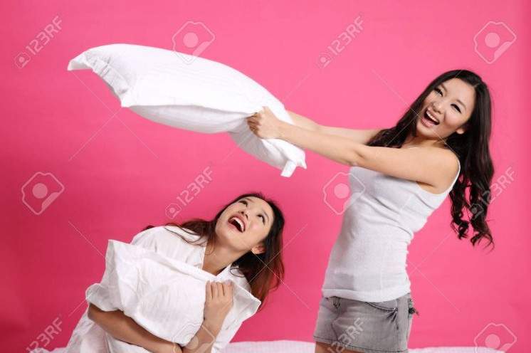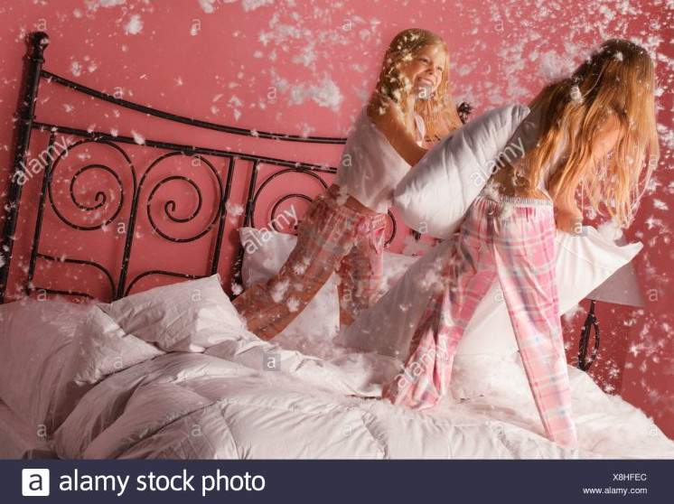 Лизбиянки стычка подушками.