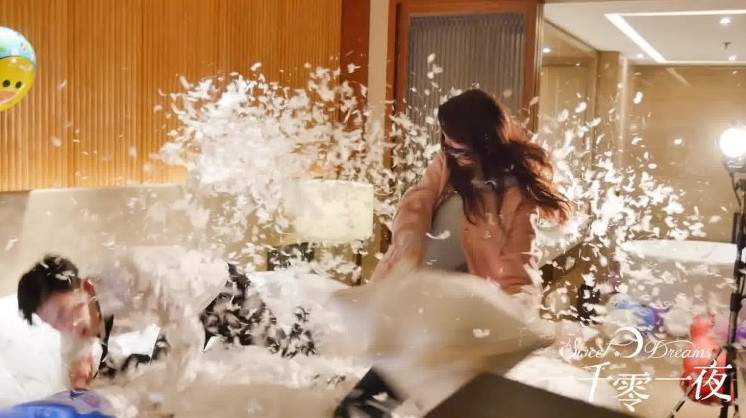 Корейские парочки дерутся подушками.