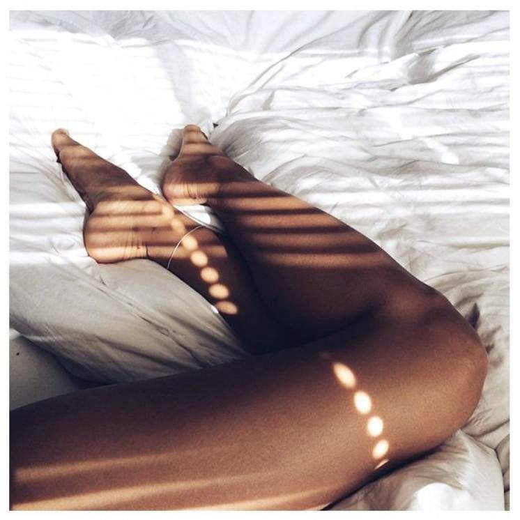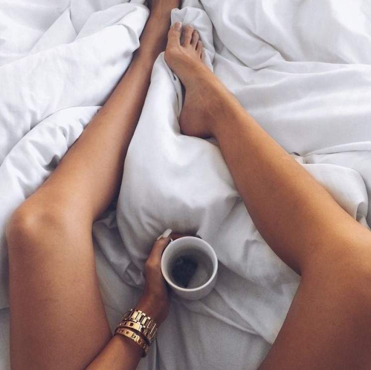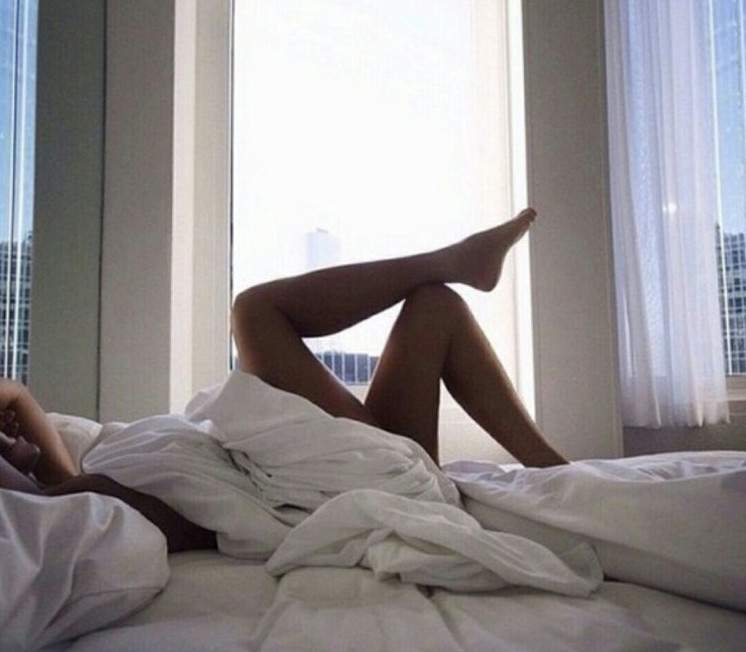 Дамские ножки на кровати.