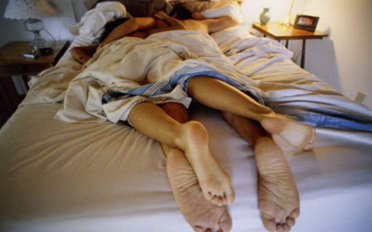 Пары в кровати без лица.