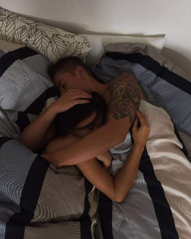 Обнимашки людей в кровати.