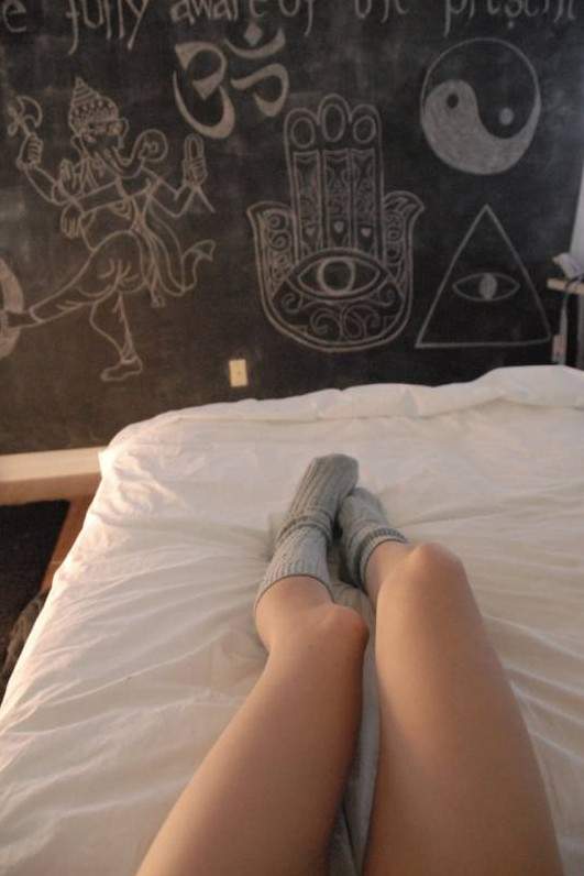 Ноги в гостинице на кровати.