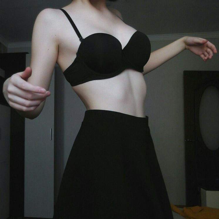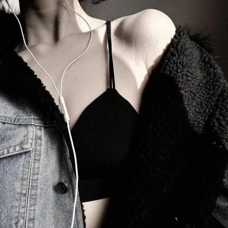 Красивая девушка в чёрном бюстгальтере.