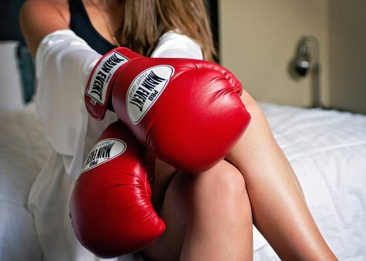 Фотосессия в боксерских перчатках девушка.