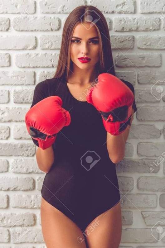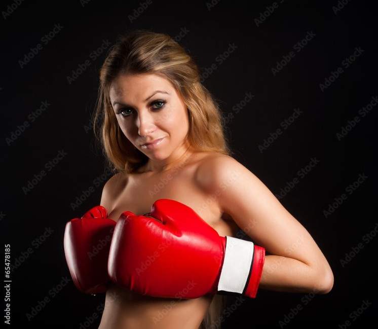 Нагая в боксерских перчатках.