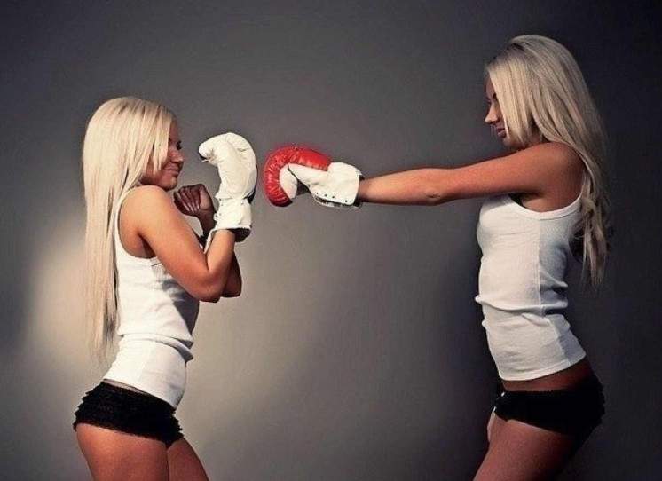 Две восхитительные женщины в боксерских перчатках.