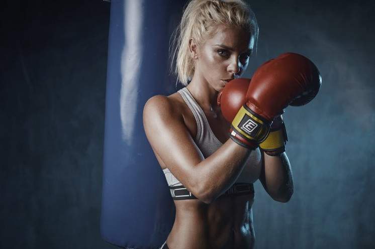 Блондиночка в боксерских перчатках.