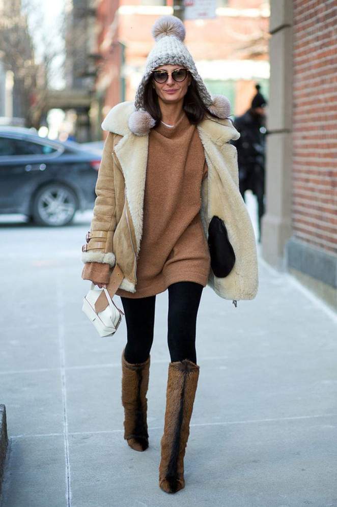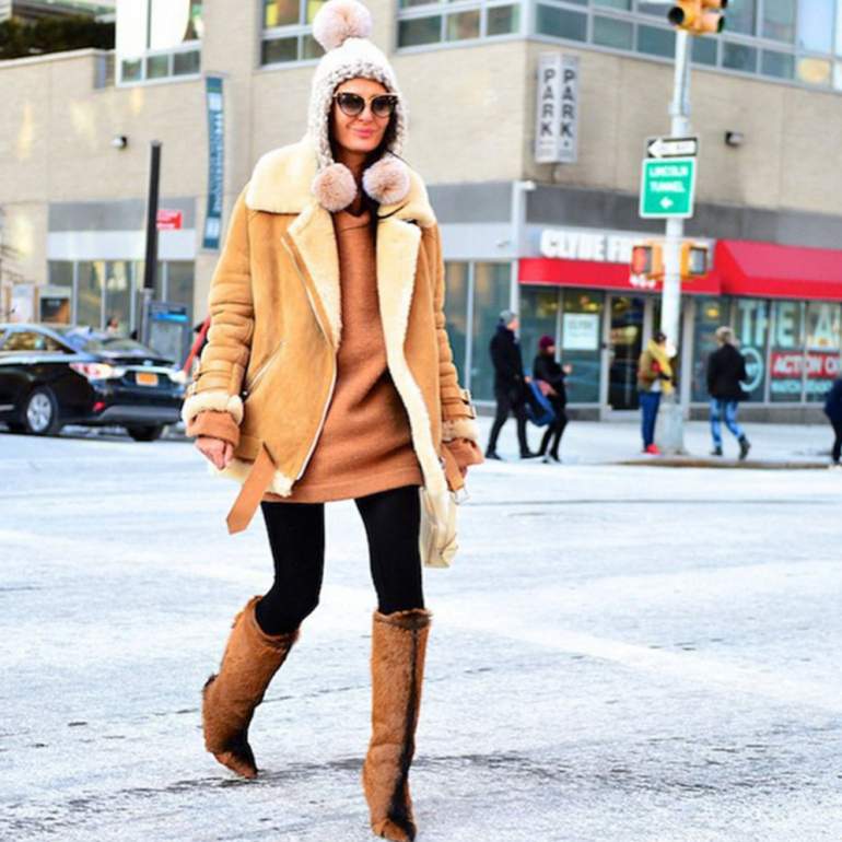 Дубленка с сапогами.