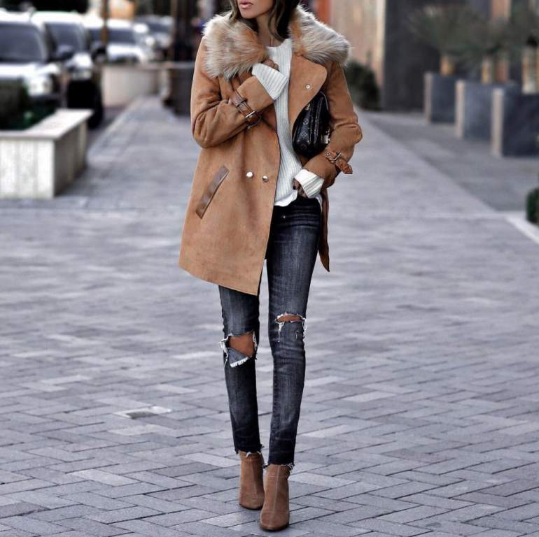 Комфортный и стильный образ с дубленкой.