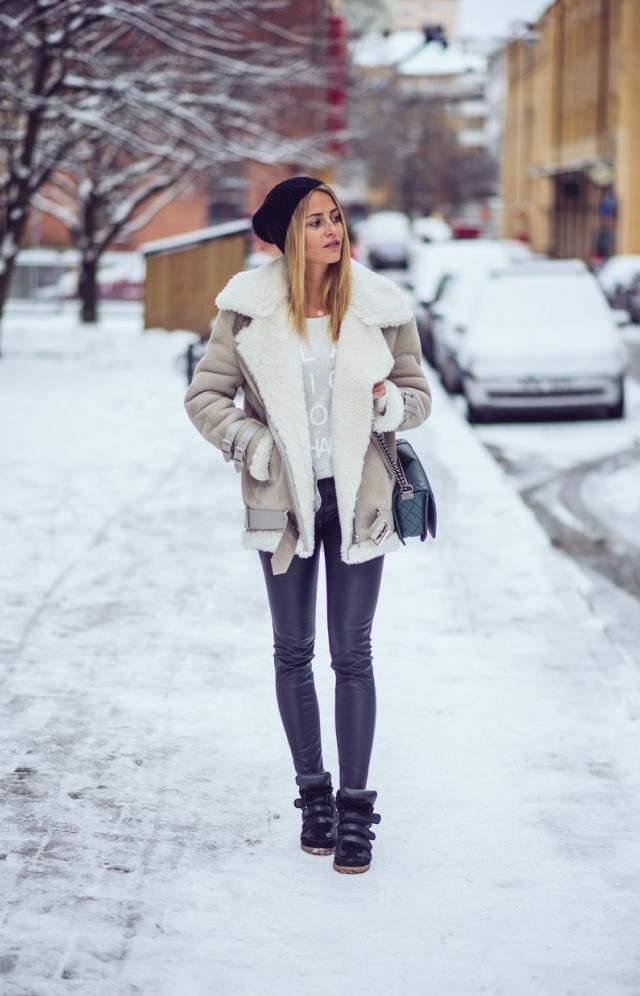 Образы с белоснежной дубленкой.