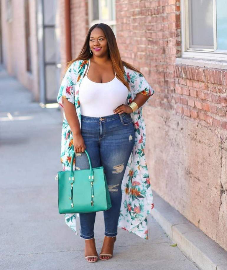 Образы полной женщины в джинсах.