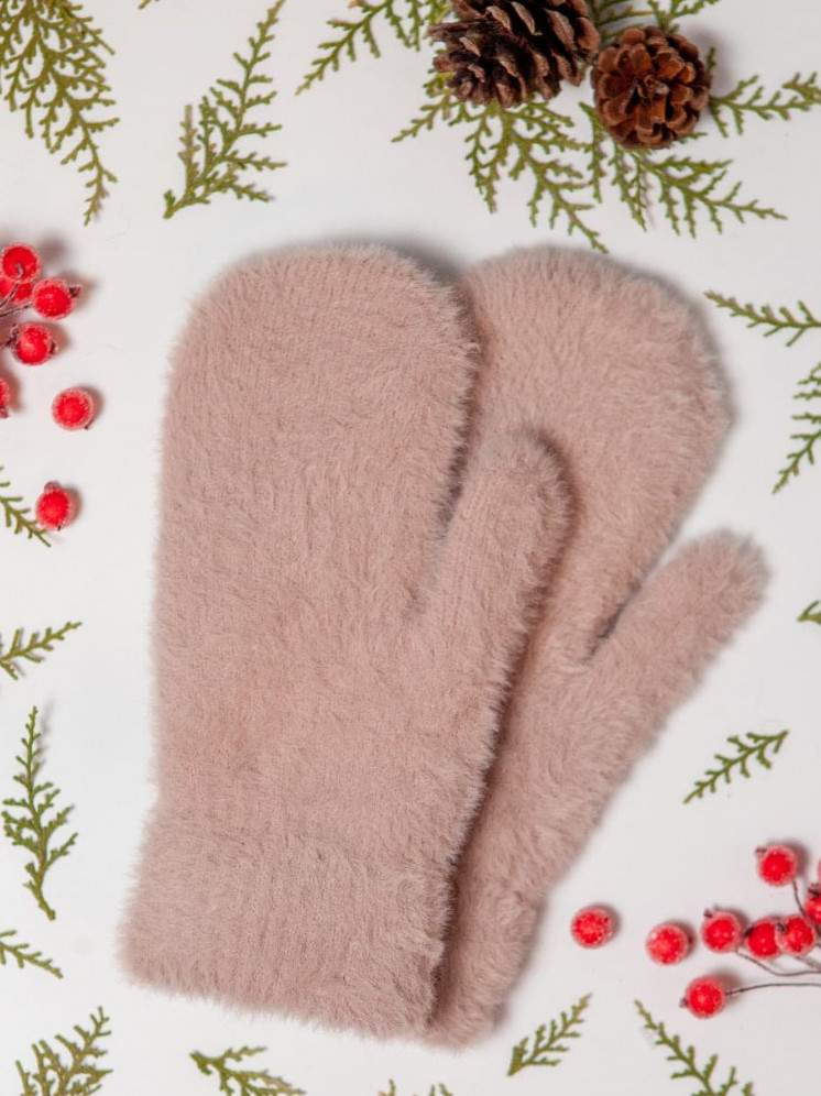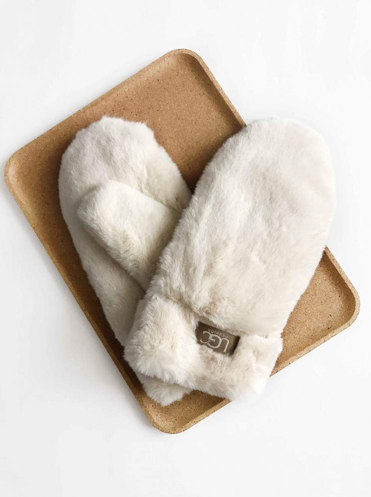 Варежки бежевые лохматые.