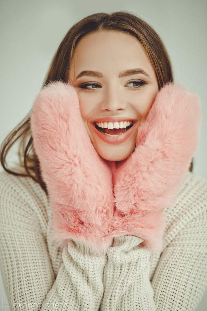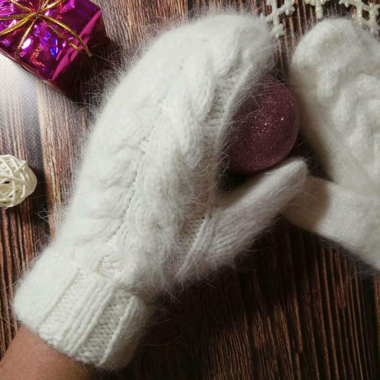 Белоснежные меховые варежки.