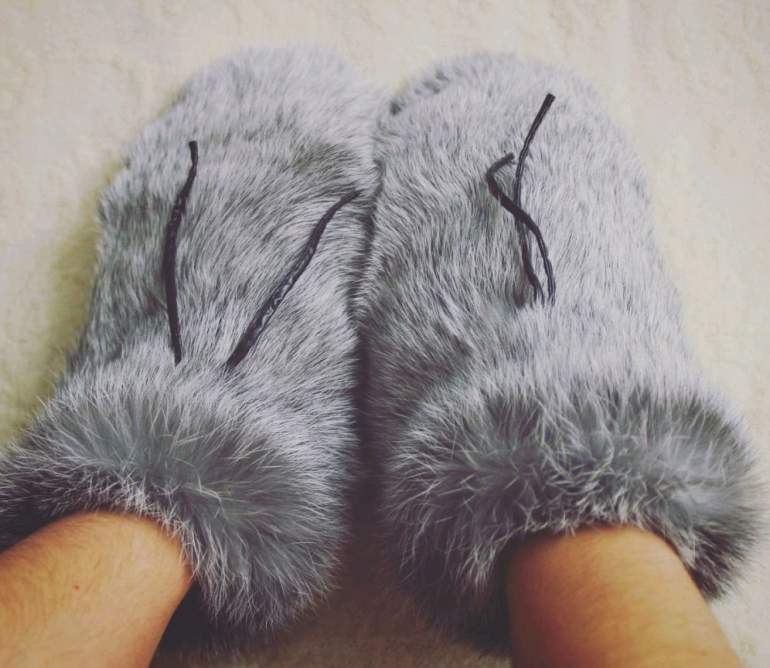 Варежки из кроличьего меха.