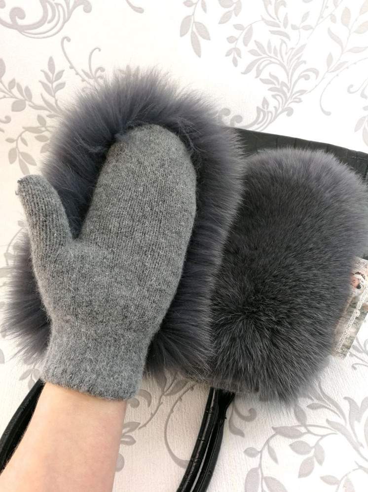 Вязаные варежки из меха.
